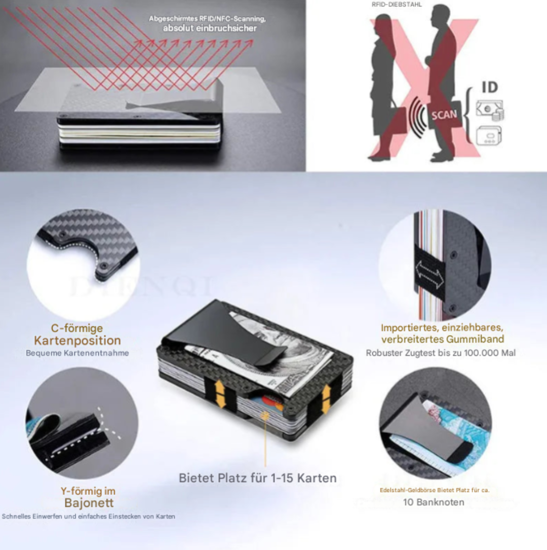 Gefertigt aus hochwertigen Materialien und mit RFID-Schutz ausgestattet, sorgt sie dafür, dass deine Daten sicher bleiben und dein Stil auch. Ob im Business, auf Reisen oder im Alltag: Slimkraft passt sich deinem Leben an, nicht umgekehrt.