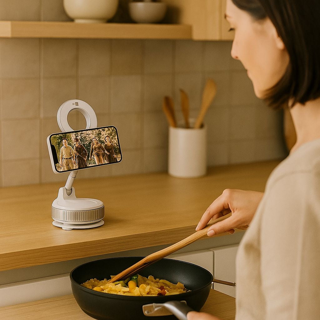 Mit TitanHold hast du dein Rezept, Video oder Anruf immer im Blick ganz ohne das Handy in die Hand zu nehmen.